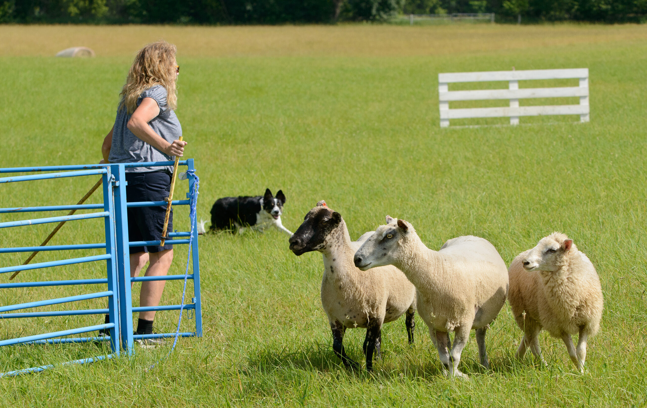 This is one Trial competitor, Kristin Reinke Livingston penning the ewes at a Novice trial in Wisconsin.